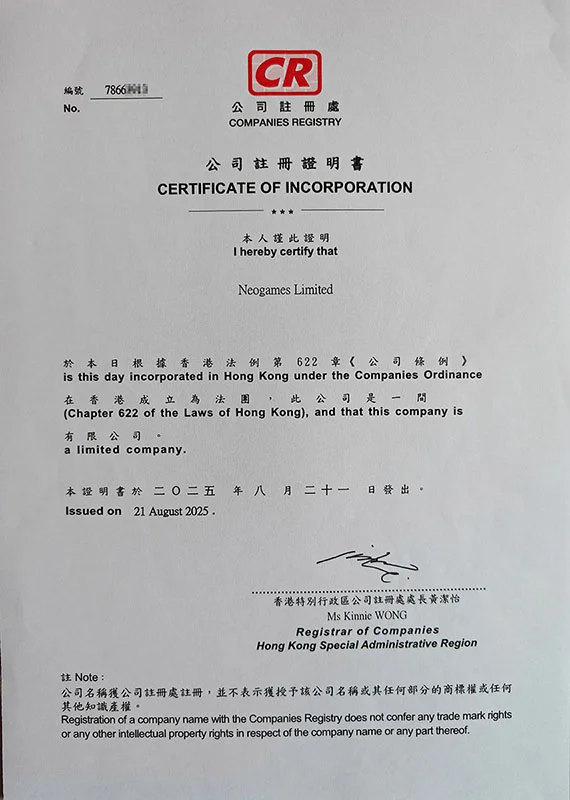 公司名稱:Neogames Limited