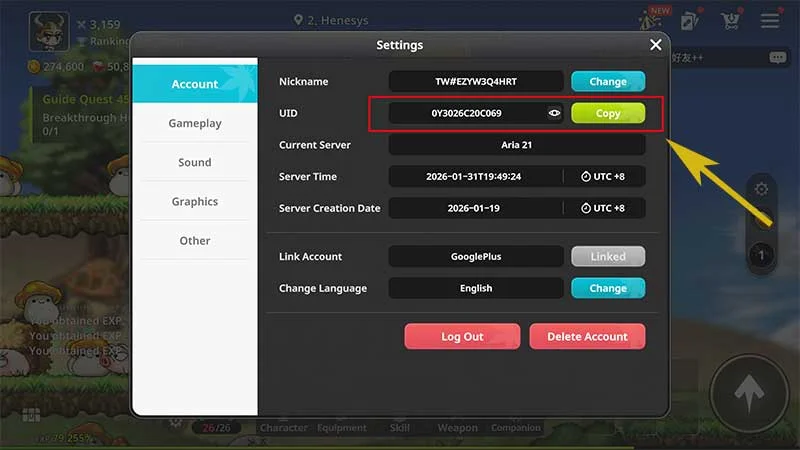 遊戲 ID:您的《楓之谷:放置冒險記》賬戶 ID